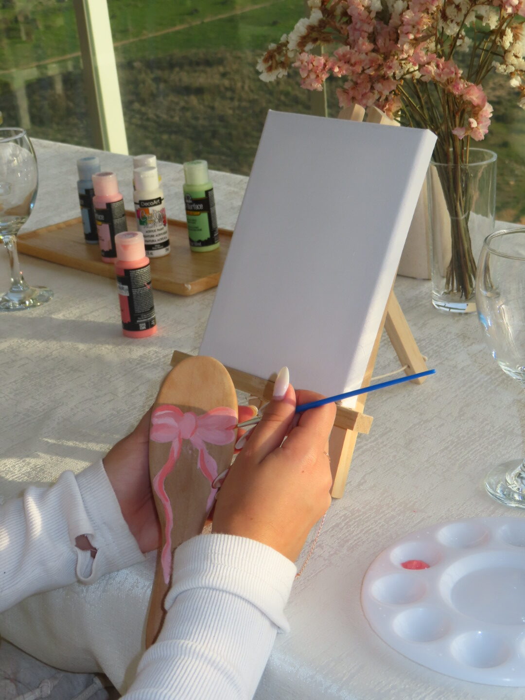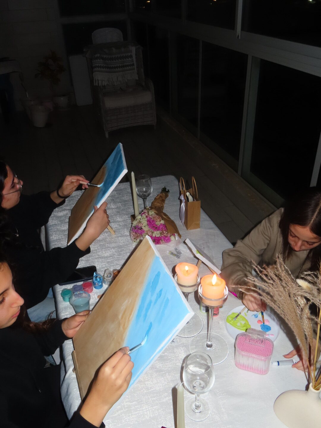 הסדנא מתקיימת אצלי במרפסת באווירה קסומה ברחובות החדשה עם נוף פתוח שמעניק השראה אמיתית ליצירה.